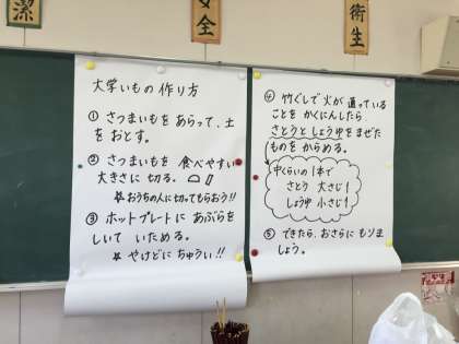 レシピの写真ものせています。2年生は、1人1つずつお芋を持ってかえっているので、お家でも挑戦してみてくださいね。