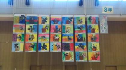 3年生の立体作品は「ランチタイム」、平面作品は「彩とりどり」です。