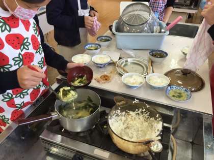 6月に田植えを行って、収穫したお米を使って、調理実習を行いました。