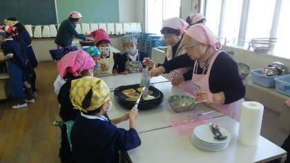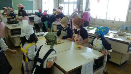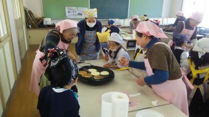 食生活改善推進員協議会(食推協)の方に来校していただき、1年生がおやつづくりをしました。
