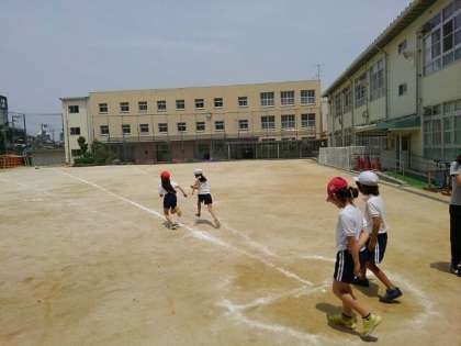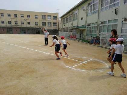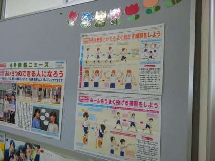 掲示板には、速く走るための準備運動のポスターが掲示されています。