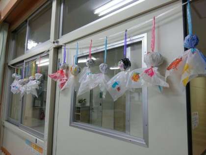 子どもたちもてるてる坊主を作って日曜日のお天気を願っています。