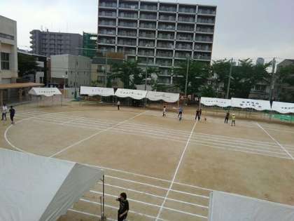 これからの雨が予想されるため、運動会前日準備は途中までで、当日朝に会場を仕上げます。