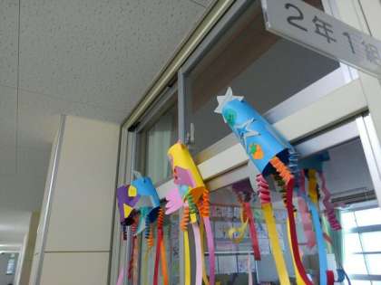 2年生の紙工作のロケットにもねがいごとが乗っています。