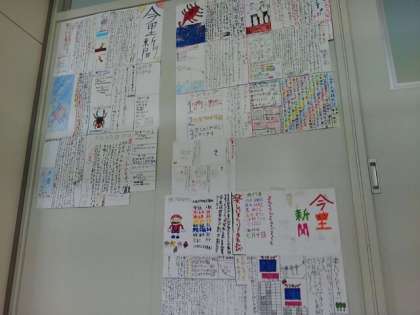 4年生は、国語の学習で、グループで壁新聞を作りました。