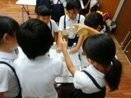 そのあと涼しい会議室で、泥水をろ過する実験をしました。