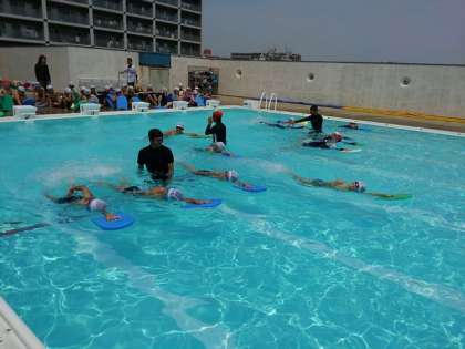 東成区の「子どもの体力向上事業」で、水泳のインストラクターさんが3名来てくださいました。