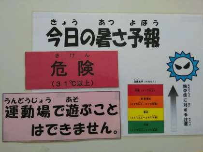 熱中症危険のレベルです。屋外での運動は中止としています。