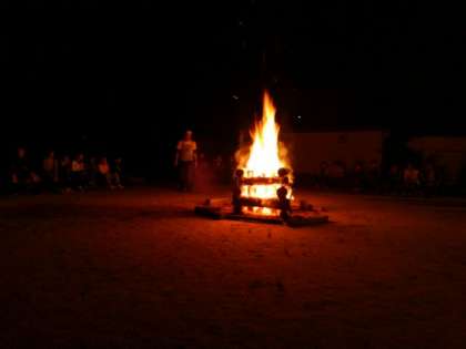ファイヤーを囲んで、グループで工夫したスタンツや歌遊びで楽しんでいます。