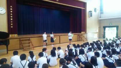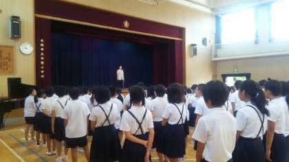 始業式では、4年生と6年生の代表が、夏休みの思い出と2学期の抱負について発表しました。