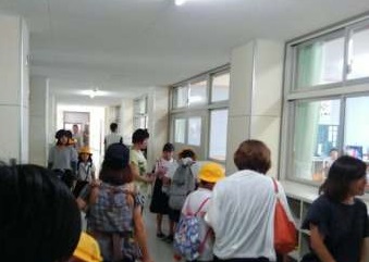 教室で非常食を配ってもらった後、引き渡し訓練でおうちの方と一緒に帰りました。