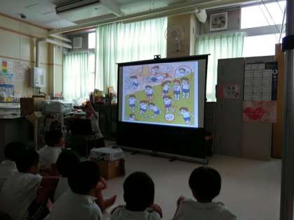 保健室では、発育測定の前に学年ごとに健康安全についての学習をしています。