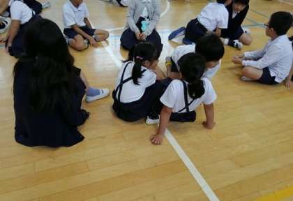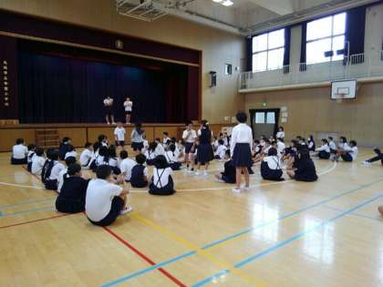 朝の児童集会で、9月28日の全校遠足オリエンテーリングの結果発表を行いました。