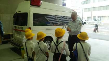 見学は、校区の図書館、消防署、警察署、美容院、地下鉄今里駅です。