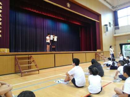 朝の児童集会で、保健委員会から今月の保健目標「目を大切にしよう」の呼びかけがありました。