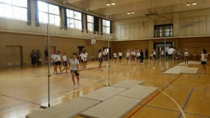 走り高跳びの学習で、バーかわりにゴムを渡して、練習するなど個別に取り組みました。