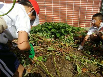 5月から生活科の学習で育てきたサツマイモを収穫しました。