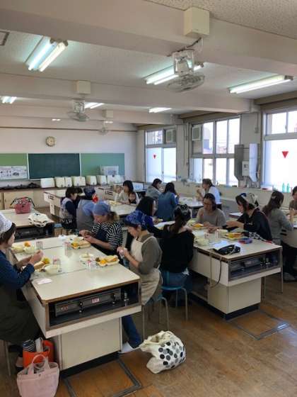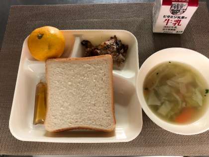 給食参観・給食試食会が行われました。給食試食会には、17名の保護者のみなさんの参加があり、子どもたちが普段 食べている給食を実際に試食していただきました。今日の献立は、「食パン」「牛乳」「鶏肉と野菜のスープ」「なすのミートグラタン」「はちみつ」「みかん」で、どれも好評でした。