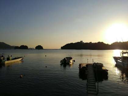 朝日に輝く海の景色が素敵です。