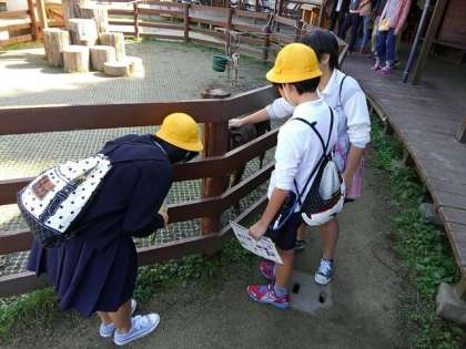 学習牧場をた訪ねたグループは、ブタの視力検査を体験したり、子牛をなでたりしました。牛の鳴き声を間近できいてビックリ!