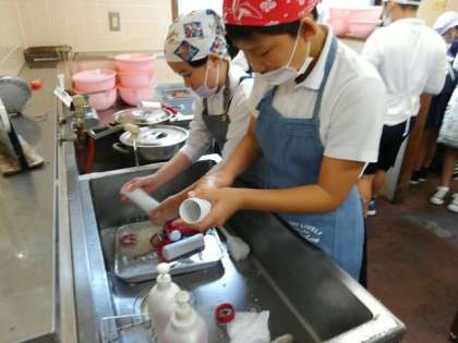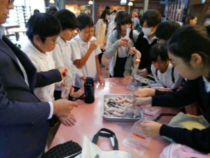 ちょうどよい長さで腸をねじって、ゆであげてもらいます。