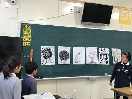 日本水墨画美術協会の方々にゲストティーチャーとして来校していただき、5・6年生が水墨画を体験しました。