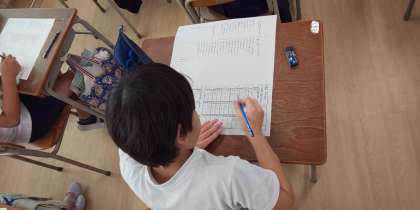本日、全校児童が「今里小漢字検定」に取り組みました。