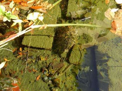 お天気のいい運動場では、いきいき活動の子どもたちが学年入り混じって遊んでいます。寒くなって、カメは池の底に頭をもぐりこませてじっとしています。