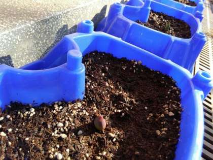 1年生が植えたチューリップの球根はかわいい芽をのぞかせています。