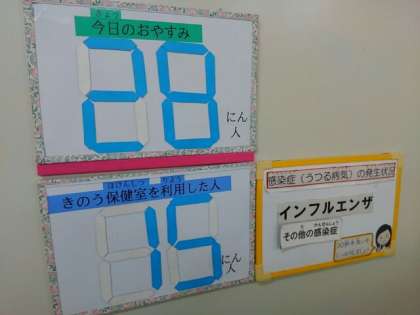 3連休明け、インフルエンザや発熱での欠席が急増しました。