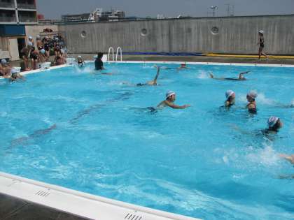 7月9日(火)3・4年の水泳学習でクロールの腕のかきにこだわって練習しました。面かぶりクロール(息つぎなし)で25mを何度も練習しました。