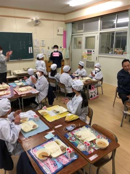 今日は、1年生と4年生、3年生と6年生で給食時間に交流をしました。