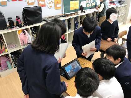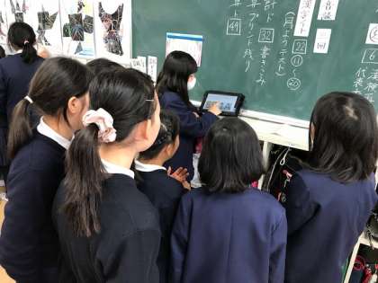 国語科の「伝えよう、委員会活動」の単元で、各委員会での活動の様子をプレゼンテーションソフトを使って紹介しました。