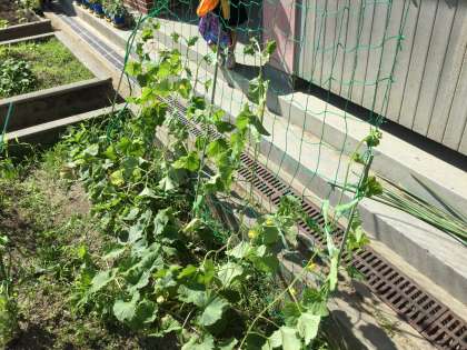 ネットに伸びる玉造黒門越瓜は、つるがしっかりと巻きつき、ぐんぐんと伸びていきました。