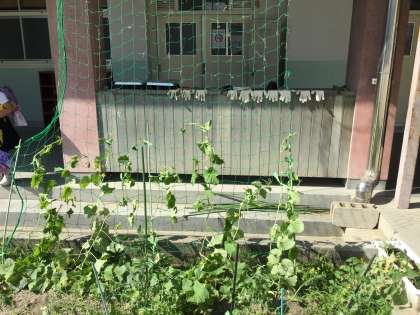 葉っぱが広がっていく様子はとても力強く、学習園には緑のカーテンができ始めています。