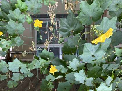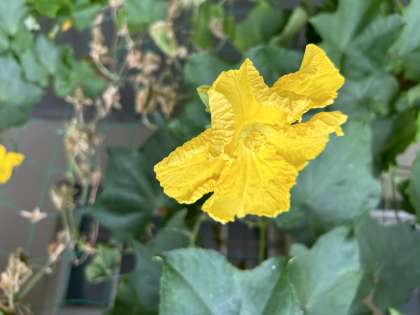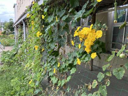 学習園の「玉造黒門越瓜(たまつくりくろもんしろうり)」には、たくさんの花が咲き始めました。