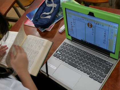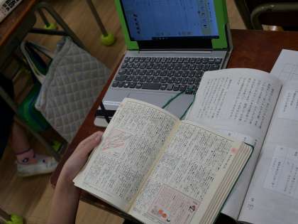 3年 分厚い辞書とタブレット端末でハイブリッド学習