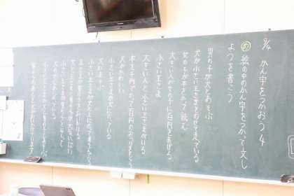 これまでfに習った漢字を使って、イラストを見て文章を作りました。