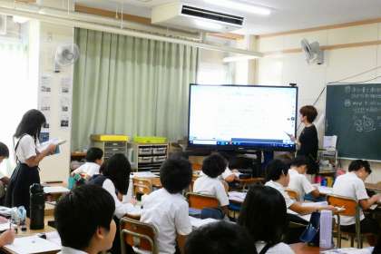 電子黒板を使って、教科書の文章の大切なところに、赤い線を引きます。