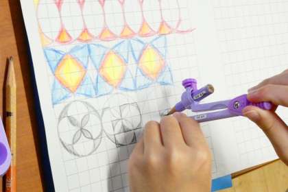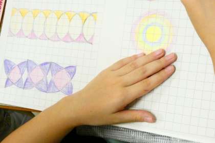 いろいろな形を作っています。色を塗ると、きれいな形がうかびあがってきましたね。