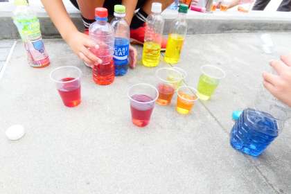 水の量でも異なる色になることや色を混ぜると○○色になったり、混ぜる色の量でも違う色ができあがり、それぞれ新しい発見がありました。