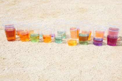 図画工作の時間に色水遊びをしました。
