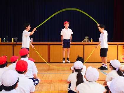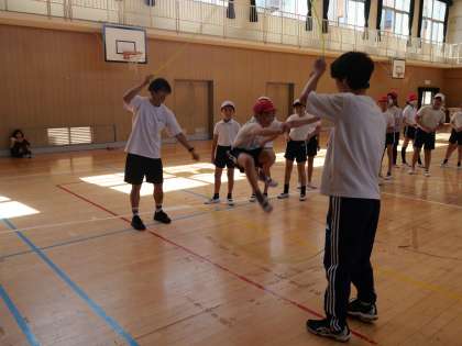子どもたちは、ダブルダッチを実際に体験し大興奮!全員が跳ぶことができました。