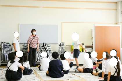 一人1枚の新聞紙を持って、多目的室に入りました。