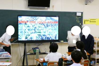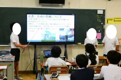 「平和探偵団」と銘打って、年代を区切って班を編成し、その時代に起こった出来事を中心に、その時代の平和度について考察を含めて発表しました。