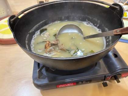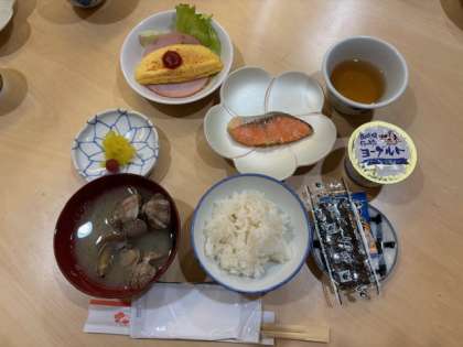 朝食のアサリのお味噌汁を「おいしい、おいしい」と、何回もおかわりしています。