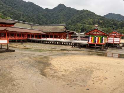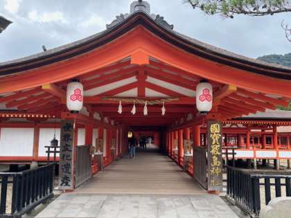 世界遺産の厳島神社に来ています。昨夜のライトアップとはまた違う雰囲気の大鳥居です。