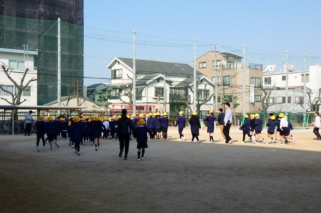 その後、津波を想定して、北校舎の3階(今里小で一番高い所)へ避難する訓練をしました。