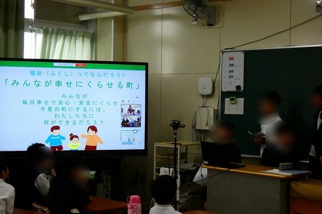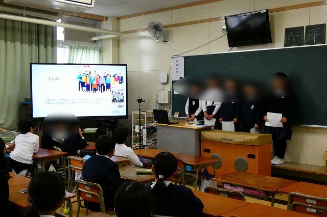 今日の昼交流は3年生からの発表でした。総合的な学習の時間に「福祉:住みやすい今里地域」について探求学習を進めています。グループごとにテーマが異なります。そのうちの一つを発表しました。3年生の発表の後「しりとり1分間チャレンジ」をしました。なんと、1分間で7つもしりとりを続けることができて、びっくりしました。