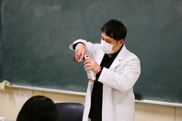 また、薬をジュースやお茶で飲むとどうなるか・・・の実験を見せていただきました。成分が代わってしまったり、薬効に影響があることを実験を通して理解しました。